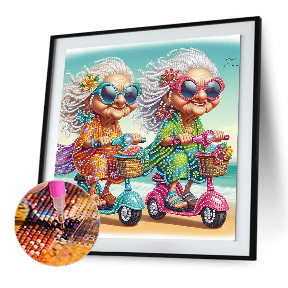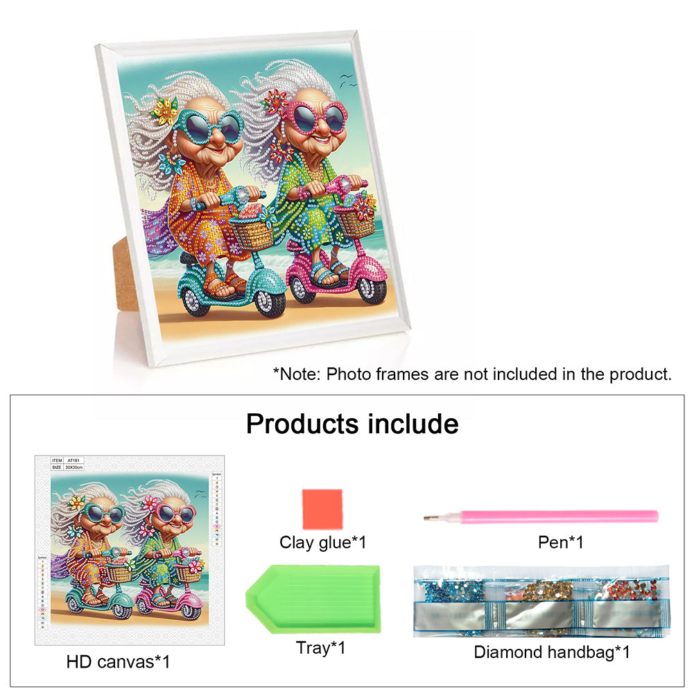 Funny Old Lady 30*30CM(Canvas) Partial Special Shaped Drill Diamond Painting