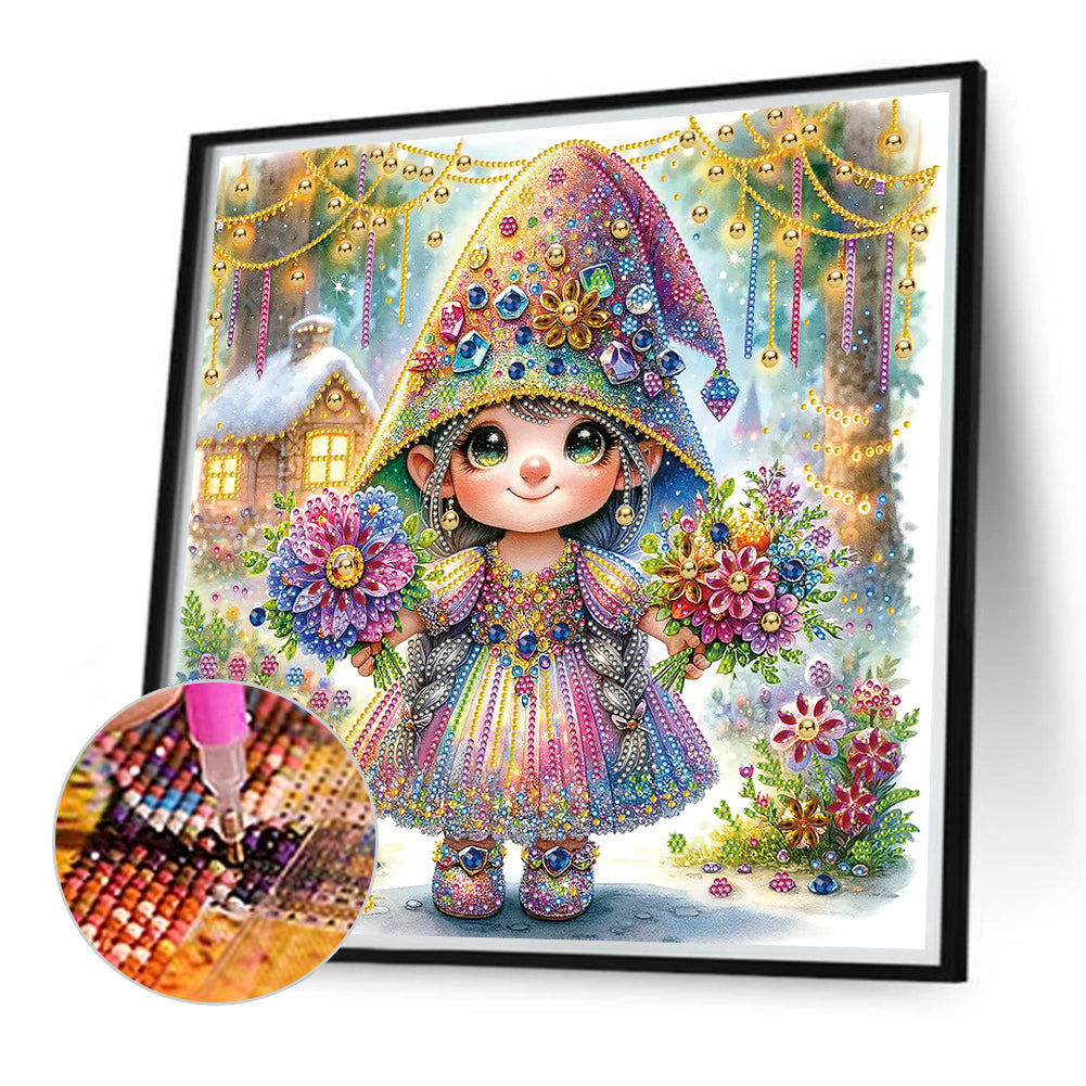 Girl With Two Bouquets In The Forest 40*40CM(Canvas) Partial Special Shaped Drill Diamond Painting
