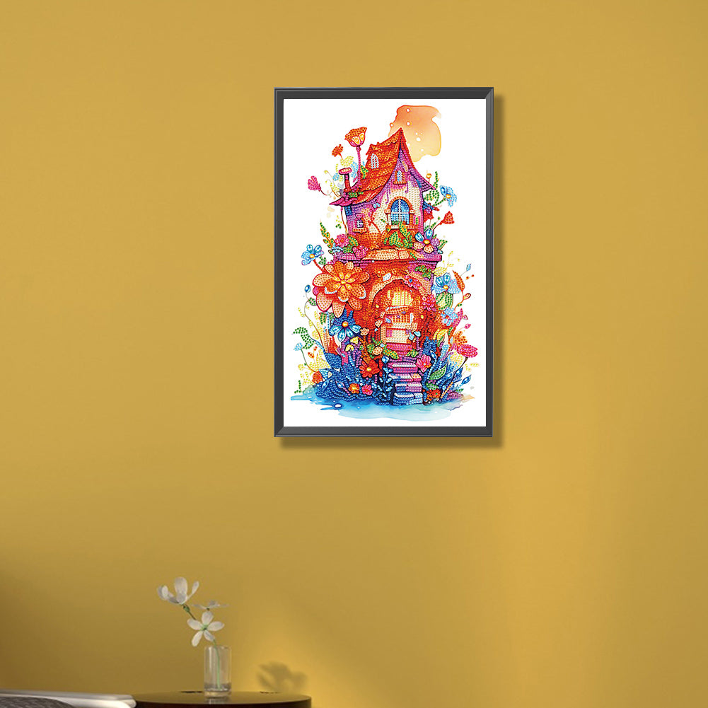 House With Small Flowers 30*50CM(Canvas) Partial Special Shaped Drill Diamond Painting