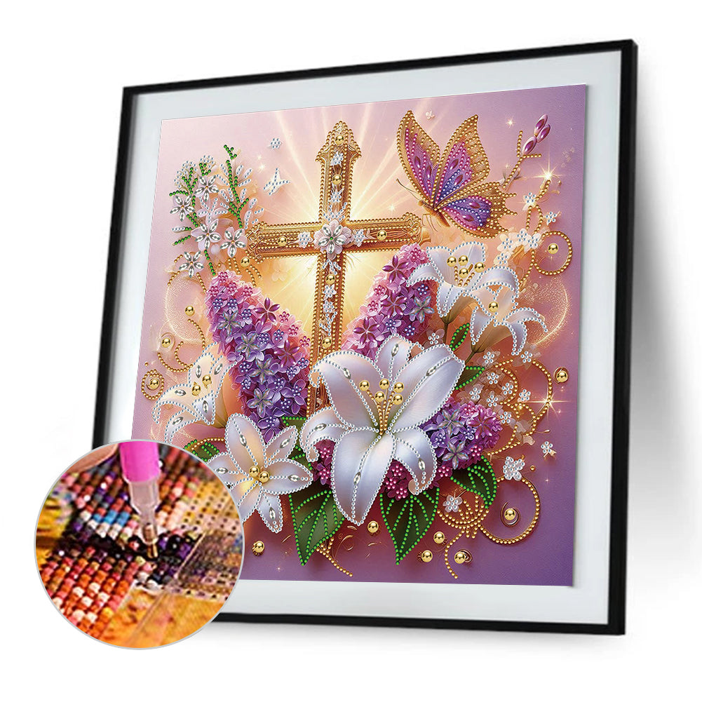 Lavender Cross 40*40CM(Canvas) Partial Special Shaped Drill Diamond Painting