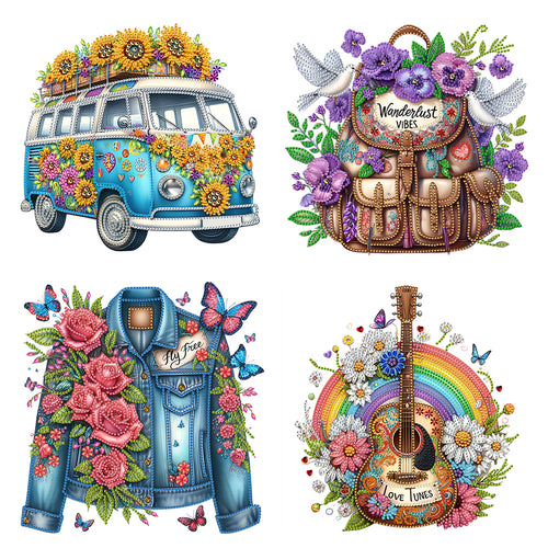 4PCS Flowers 30*30CM(Canvas) Partial Special Shaped Drill Diamond Painting