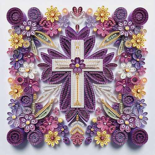 Purple And White Cross 30*30CM(Canvas) Partial Special Shaped Drill Diamond Painting
