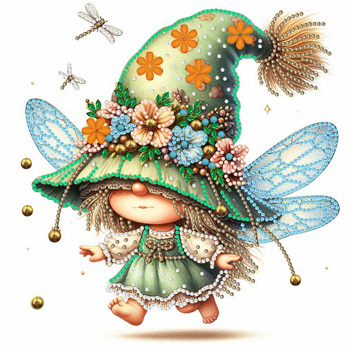 Spring Dragonfly Gnome 30*30CM(Canvas) Partial Special Shaped Drill Diamond Painting
