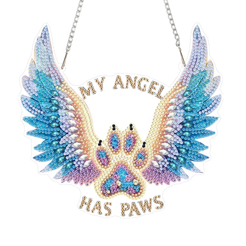 Acrylic Special Shape Winged Dog Paw DIY Diamond Art Pendant Kit for Wall Window