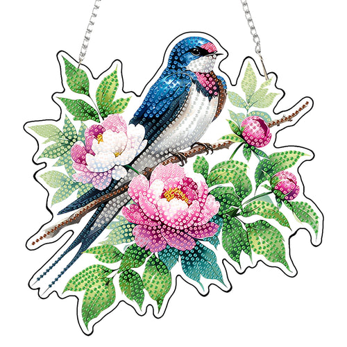 Acrylic 2D Flat DIY Flowers Bird Hanging Diamond Art Kits Wall Door Decoration