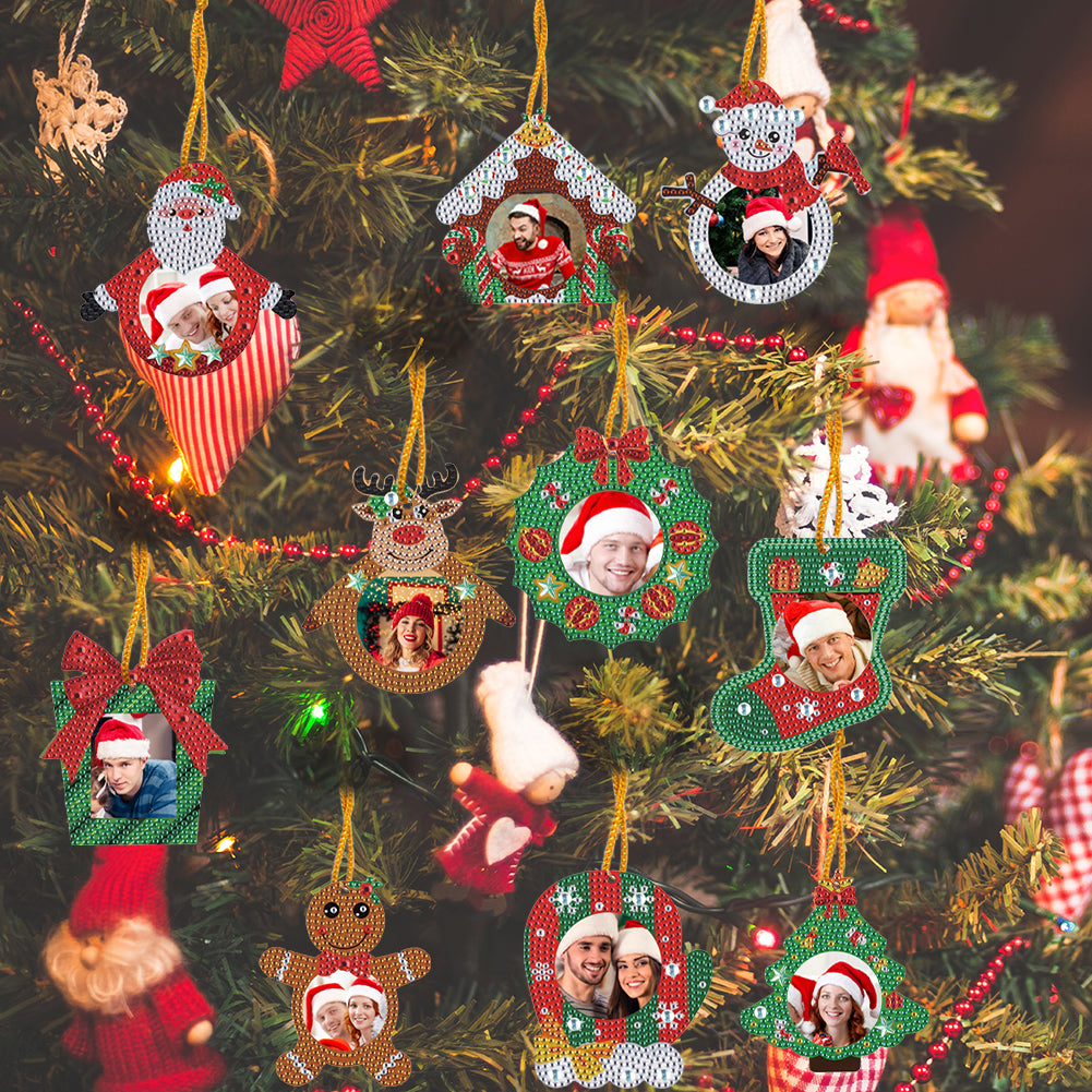 10Pcs Christmas Diamond Painting Photo Frame Hanging Pendant DIY Diamond Art Photo Frame Pendant Kit for Home Office Decor