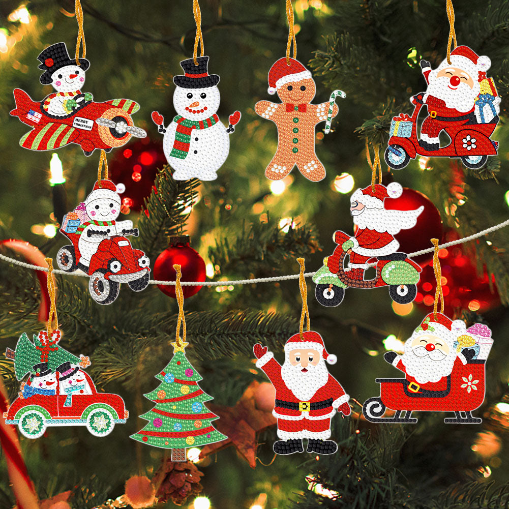 10pcs Diamond Painting Pendants Art Crafts 5D DIY Hanging Ornament Special-shaped Drill Cartoon Single Side Christmas Decoration