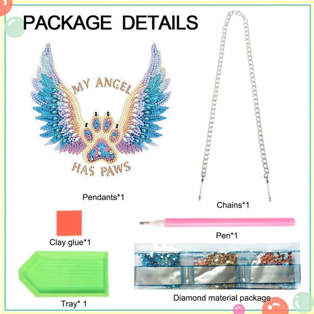 Acrylic Special Shape Dog Paw Angel Wing 5D DIY Diamond Painting Dots Pendant Diamond Painting Decor DIY Diamond Art Pendant Kit
