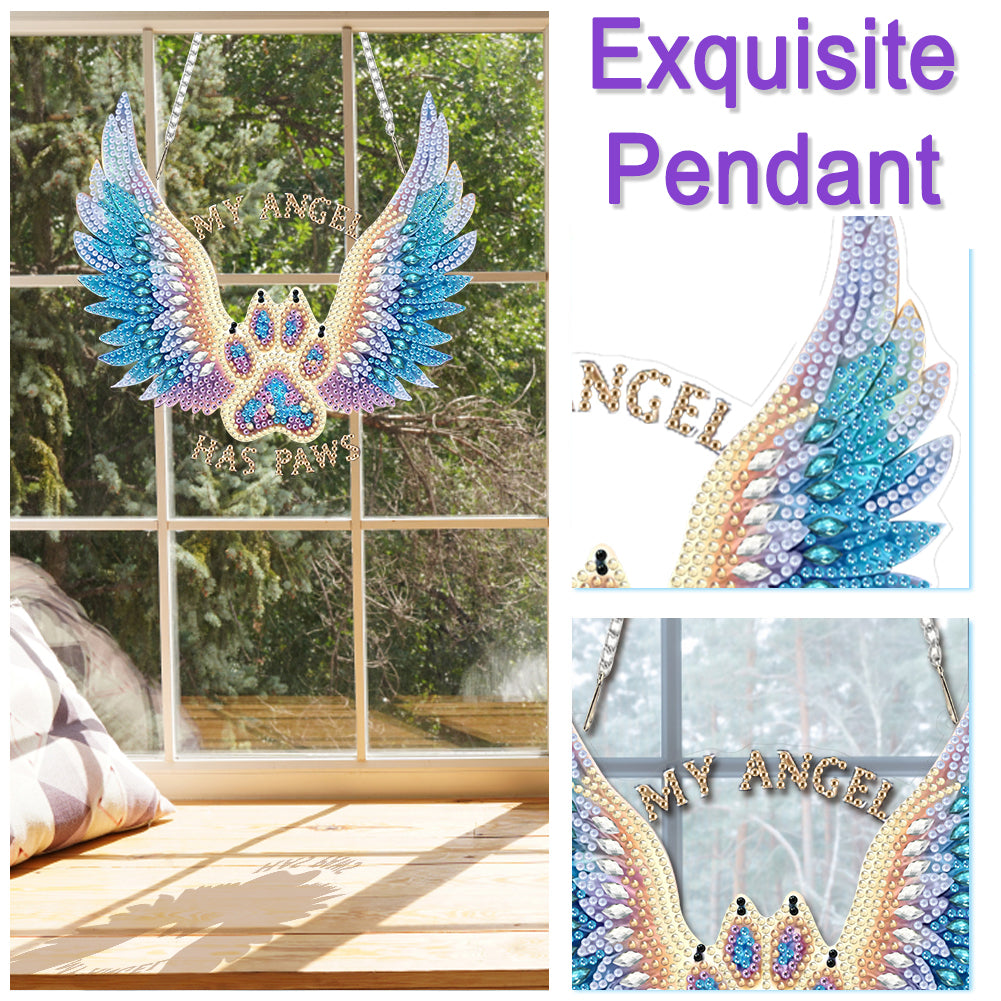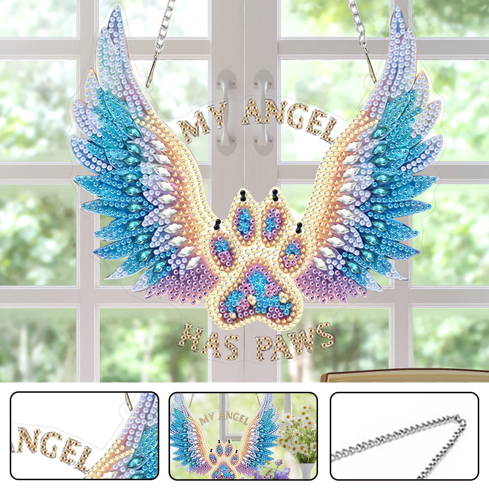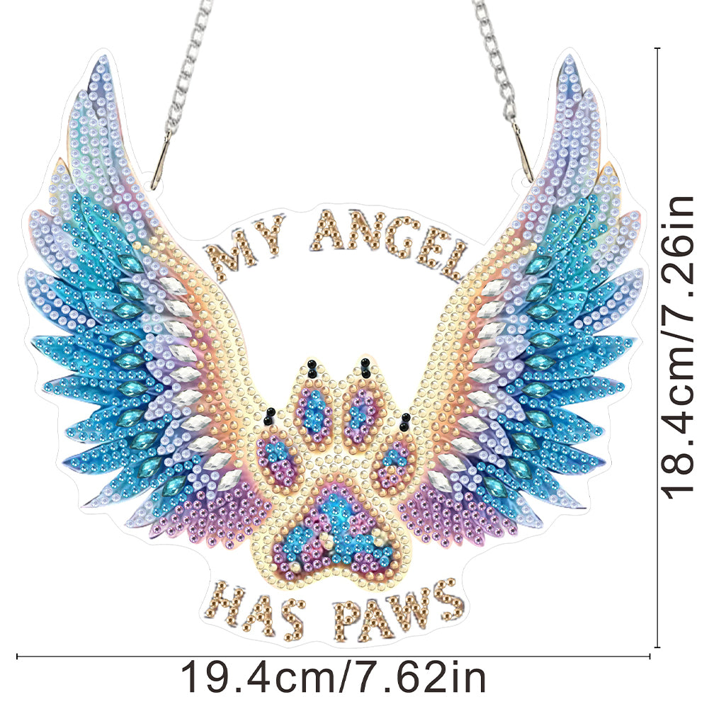 Acrylic Special Shape Winged Dog Paw DIY Diamond Art Pendant Kit for Wall Window