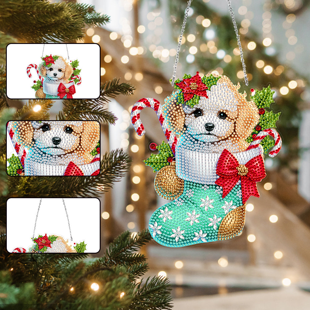 Acrylic Special Shaped Christmas Stocking Dog Diamond Painting Hanging Ornaments Kit Hanging Diamond Art Kits Bedroom Decoration