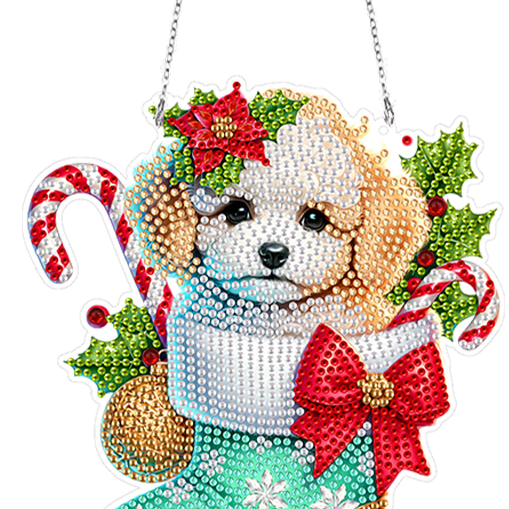 Acrylic Special Shaped Christmas Stocking Bichon Frise Hanging Diamond Kit Decor