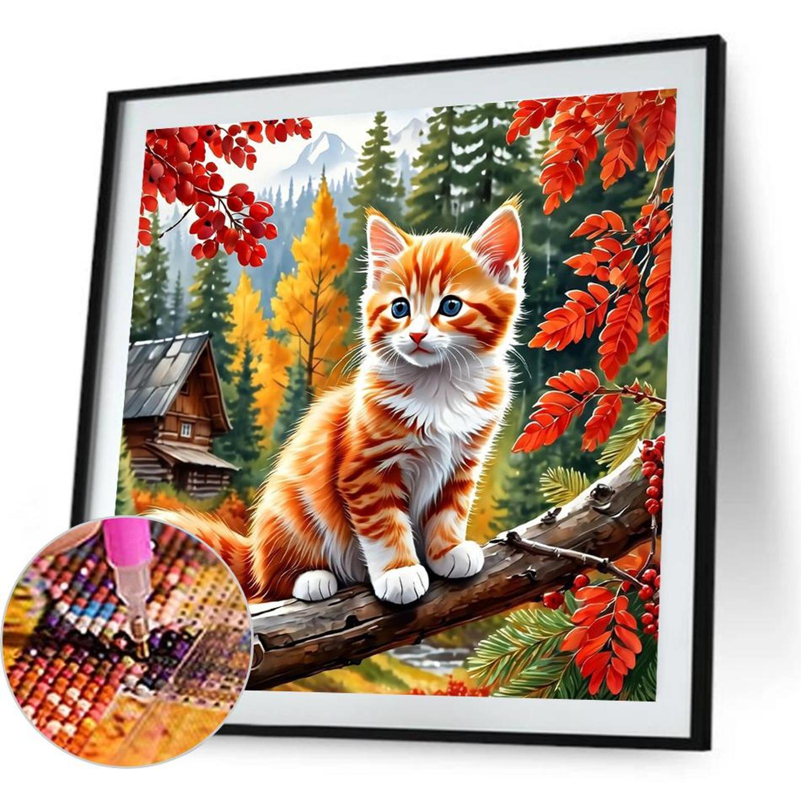 Autumn Cat 40*40CM(Canvas) Full Round Drill Diamond Painting