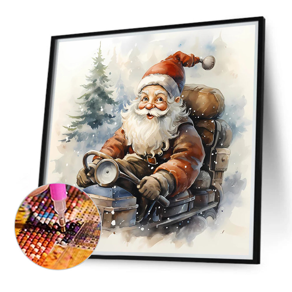 Christmas Santa Claus On A Bicycle 40*40CM(Canvas) Full Round Drill Diamond Painting