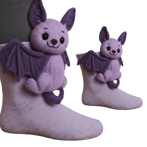 1 Pair 3D Doll Socks Funny Knit Animal Socks Floor Socks for Girls (Bat)