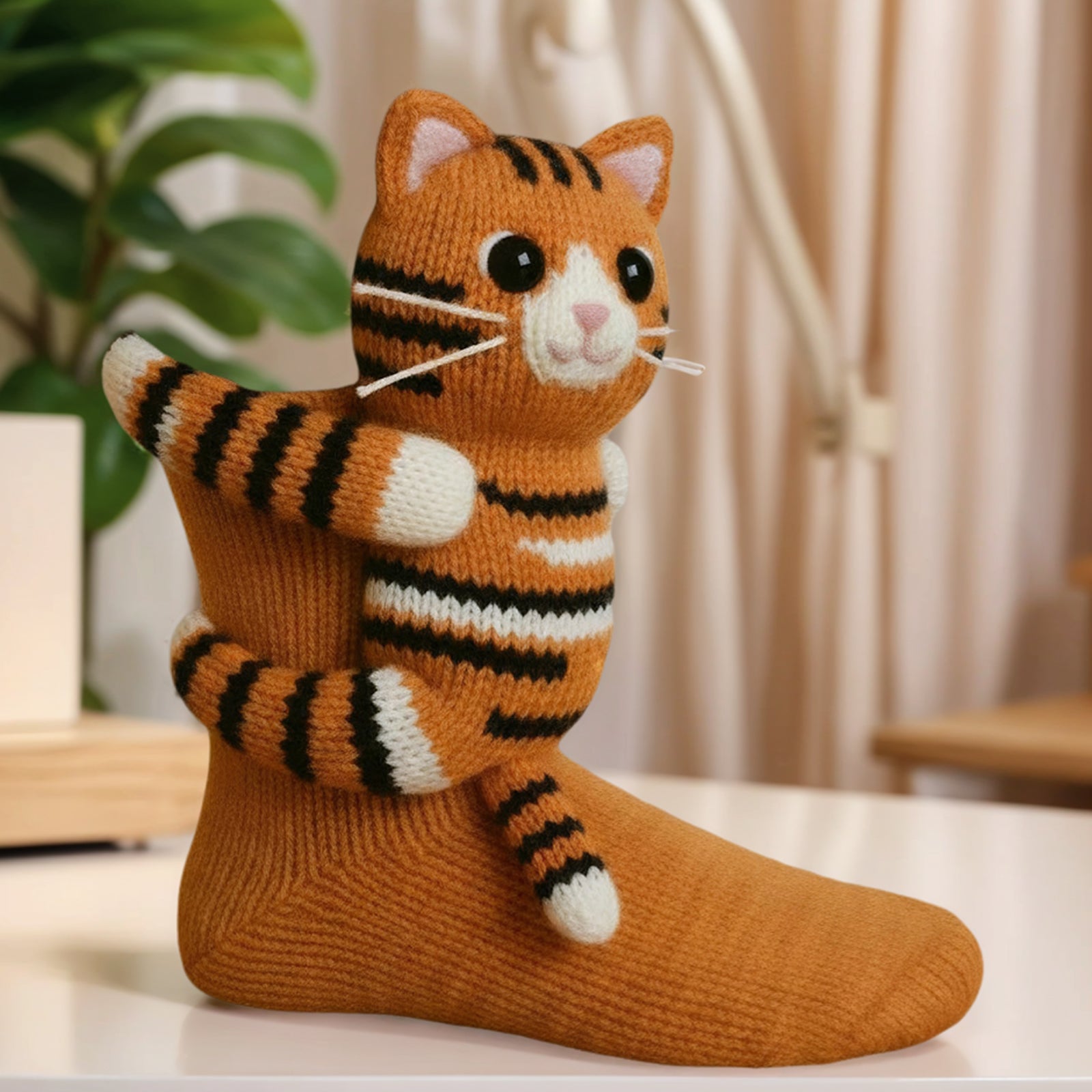 1 Pair 3D Doll Socks Funny Knit Animal Socks Floor Socks for Girls(Little tiger)