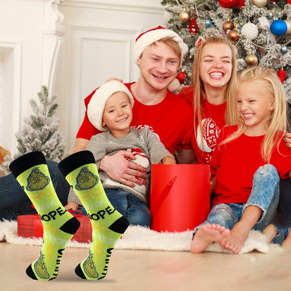 1.Festive Design: Celebrate the season with our green monster socks featuring classic red and green hues, accented with white and black details. These vibrant colors capture the joyful spirit of the holidays, making them perfect for spreading festive cheer.