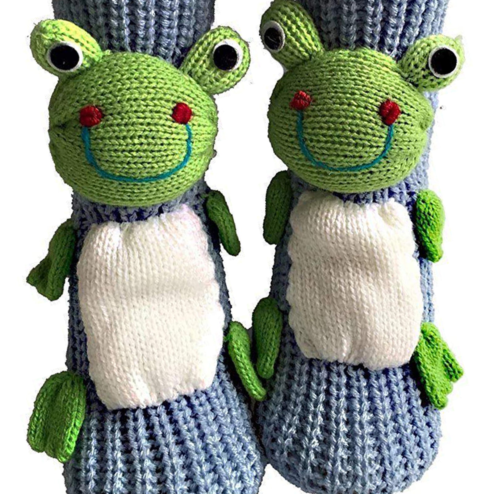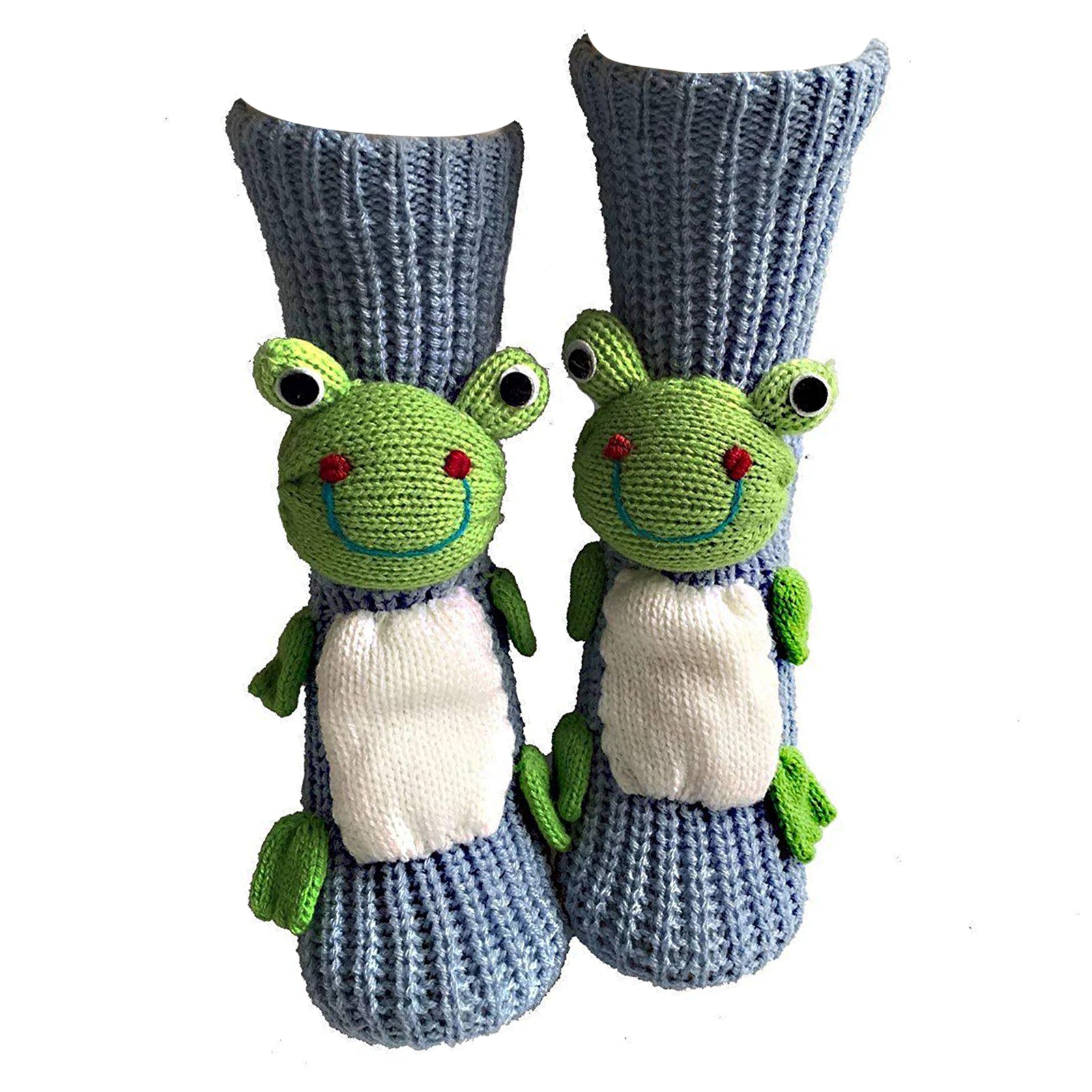 Long Stocking Stuffers Socks Chunky Knit Floor Slipper Sock (Dull Blue Frog)