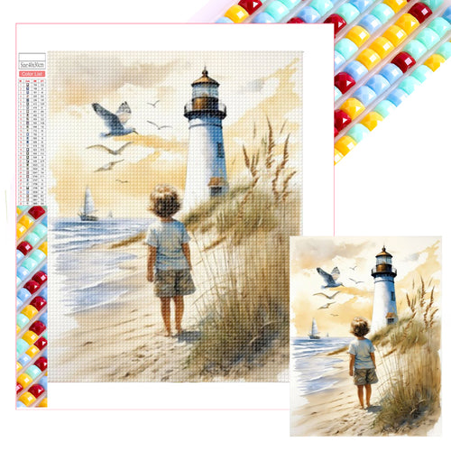 Children At The Lighthouse 30*40CM(Picture) Full Square Drill Diamond Painting