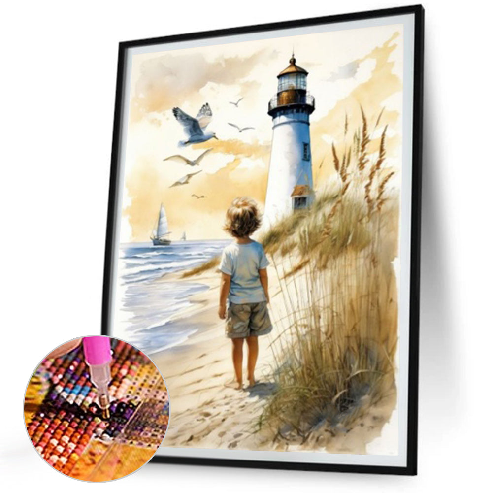 Children At The Lighthouse 30*40CM(Picture) Full Square Drill Diamond Painting