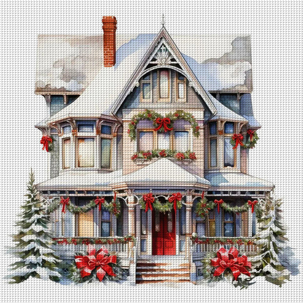 Huancan - Christmas Cottage - 50*50CM 11CT 3 Stamped Cross Stitch