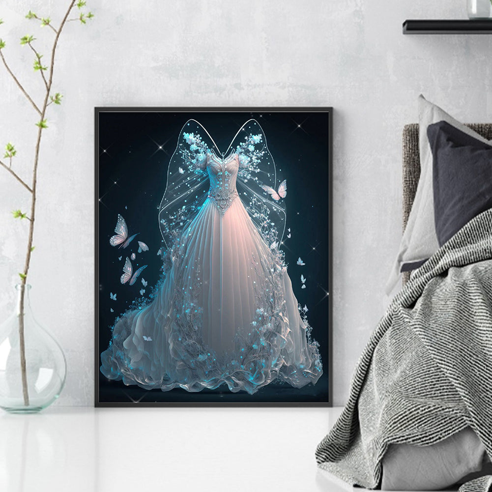 Huancan - White Dress With Butterflies - 40*50CM 11CT 3 Stamped Cross Stitch