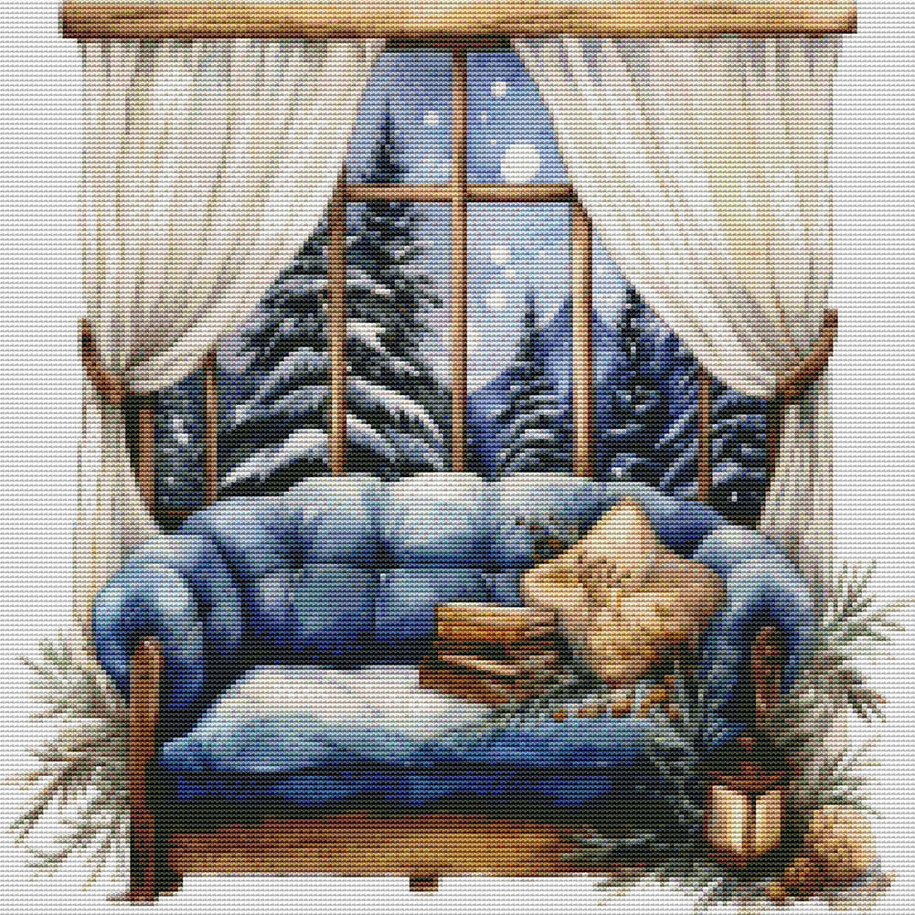Huancan - Winter Windowsill - 50*50CM 11CT 3 Stamped Cross Stitch