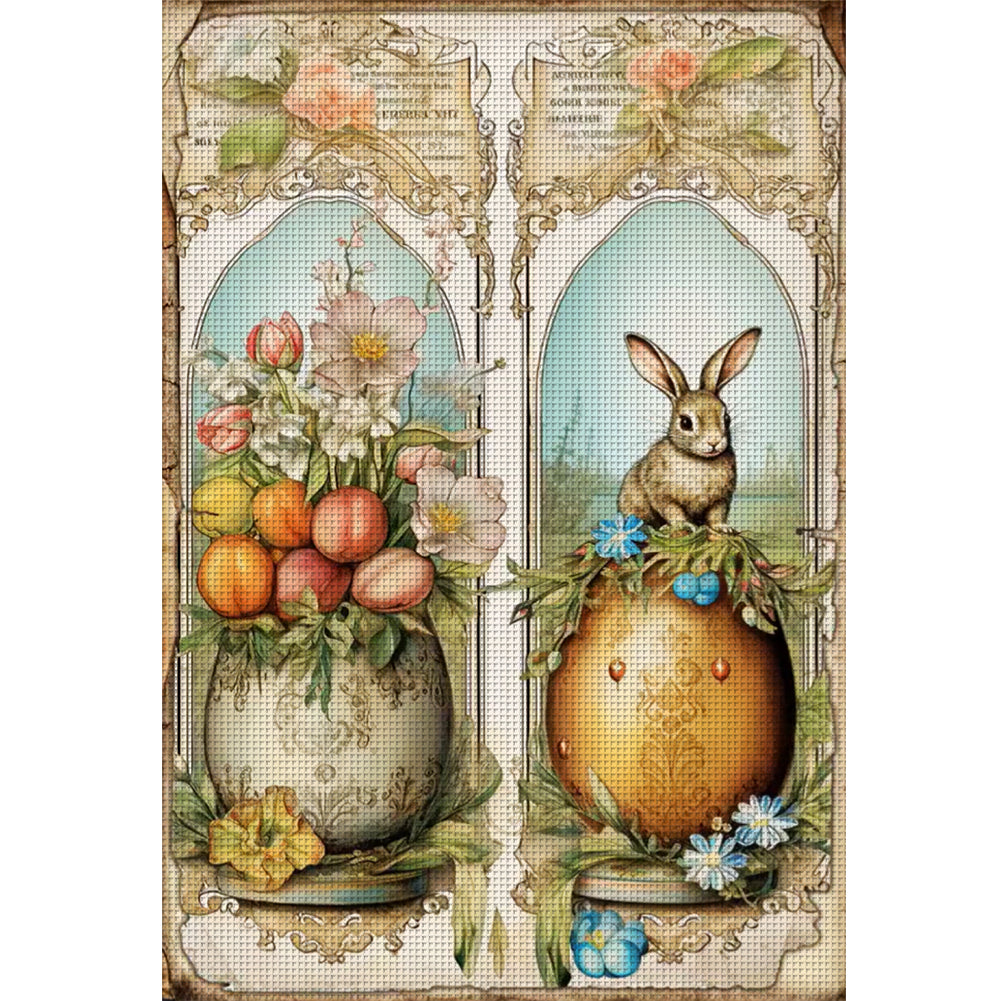 Yishu - Vintage Poster - Easter Egg And Flower Bunny - 40*60CM 11CT 3 Stamped Cross Stitch