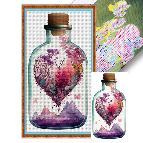 Yishu - Heart-Shaped Flowers And Plants In A Vase - 35*65CM 11CT 3 Stamped Cross Stitch