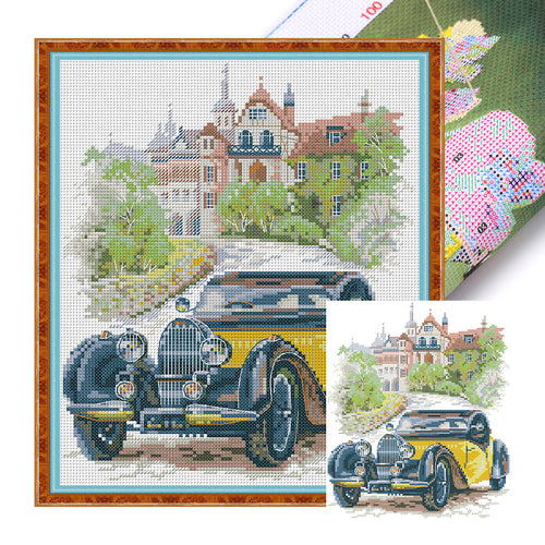 Joy Sunday - Yellow Classic Car - 26*30CM 14CT 2 Stamped Cross Stitch