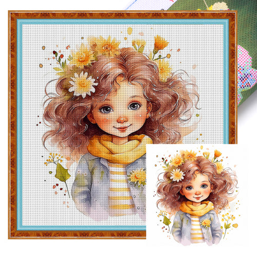 Huancan - Girl - 50*50CM 11CT 3 Stamped Cross Stitch
