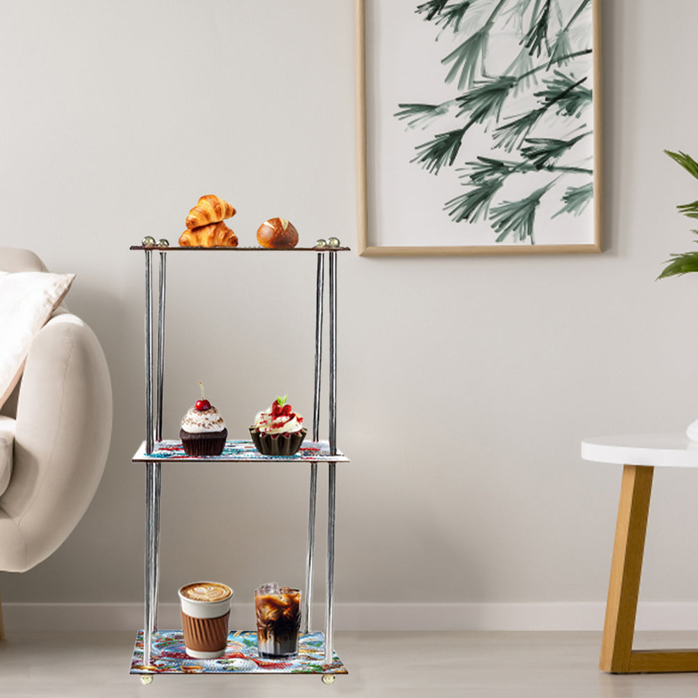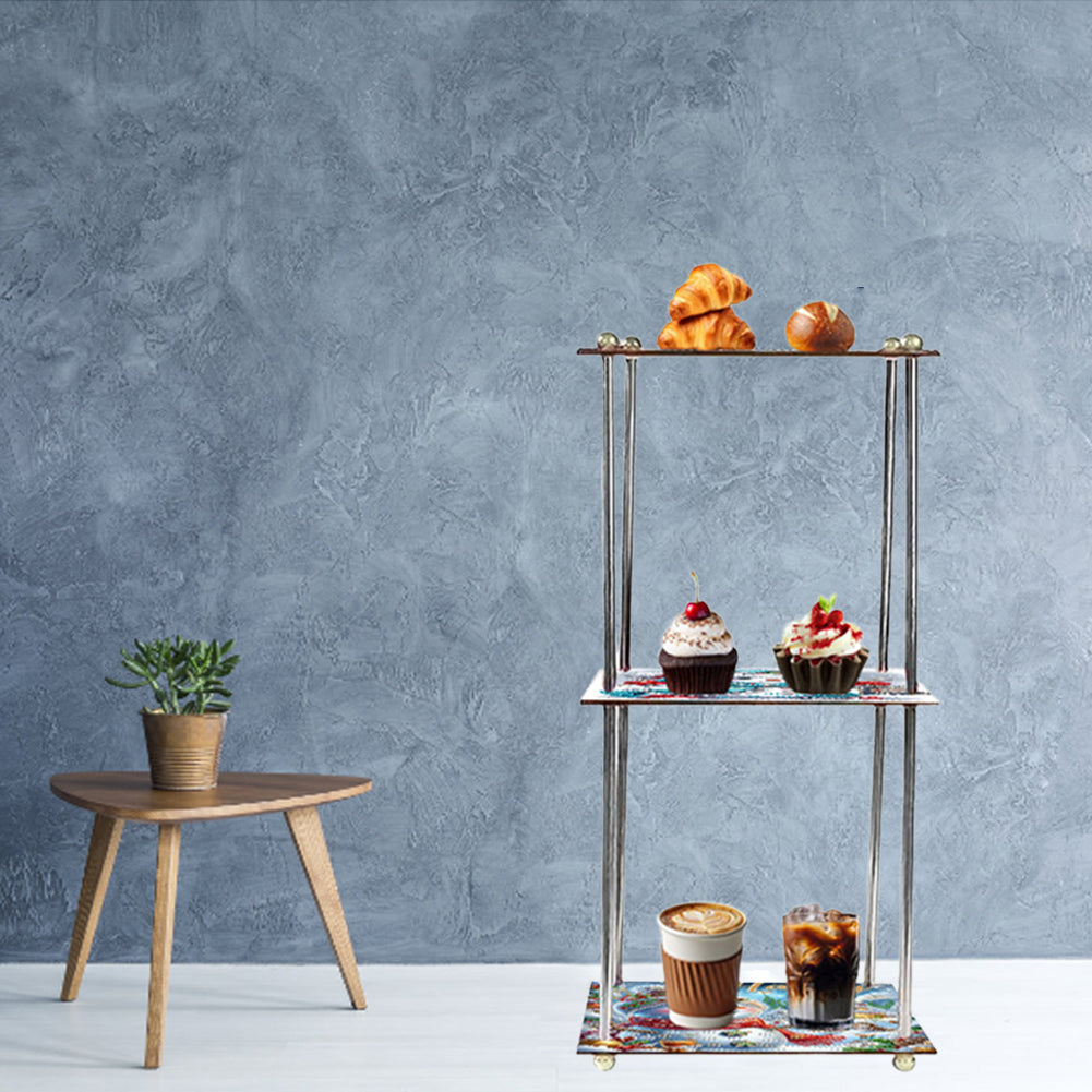 Acrylic Colorful Pattern 5D DIY Diamond Painting Serving Tray Colorful Diamond Food Dinner Plate for Desk Coffee Table