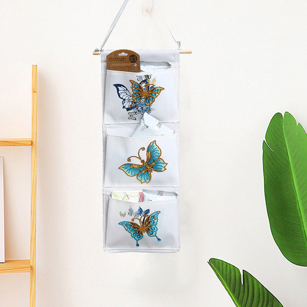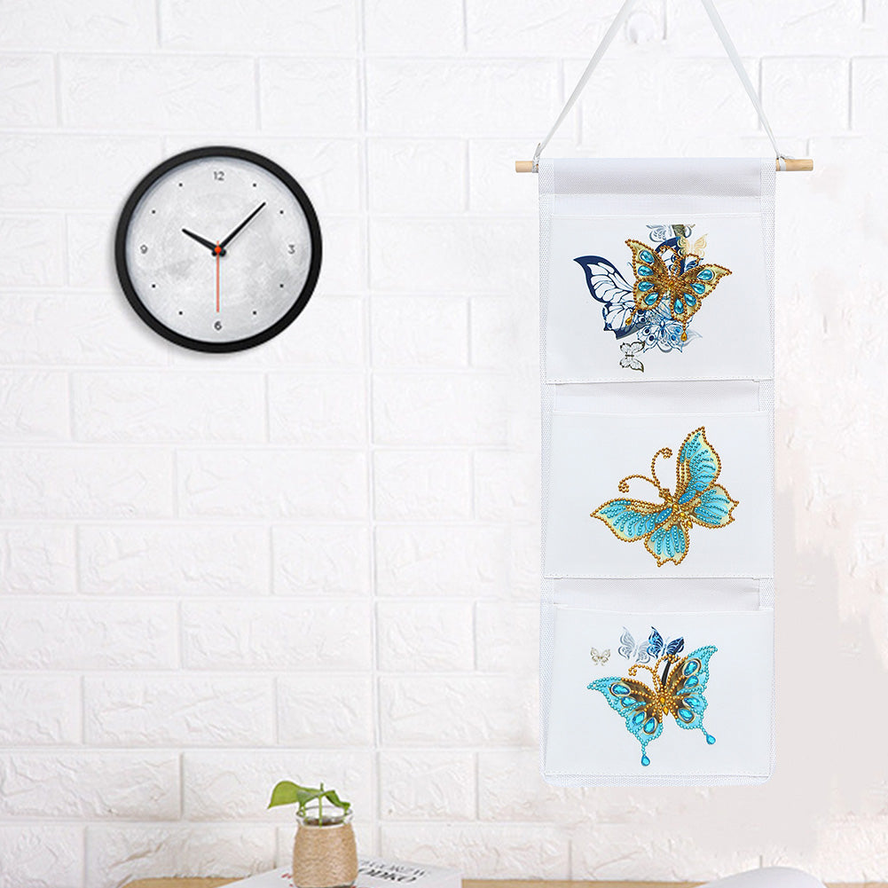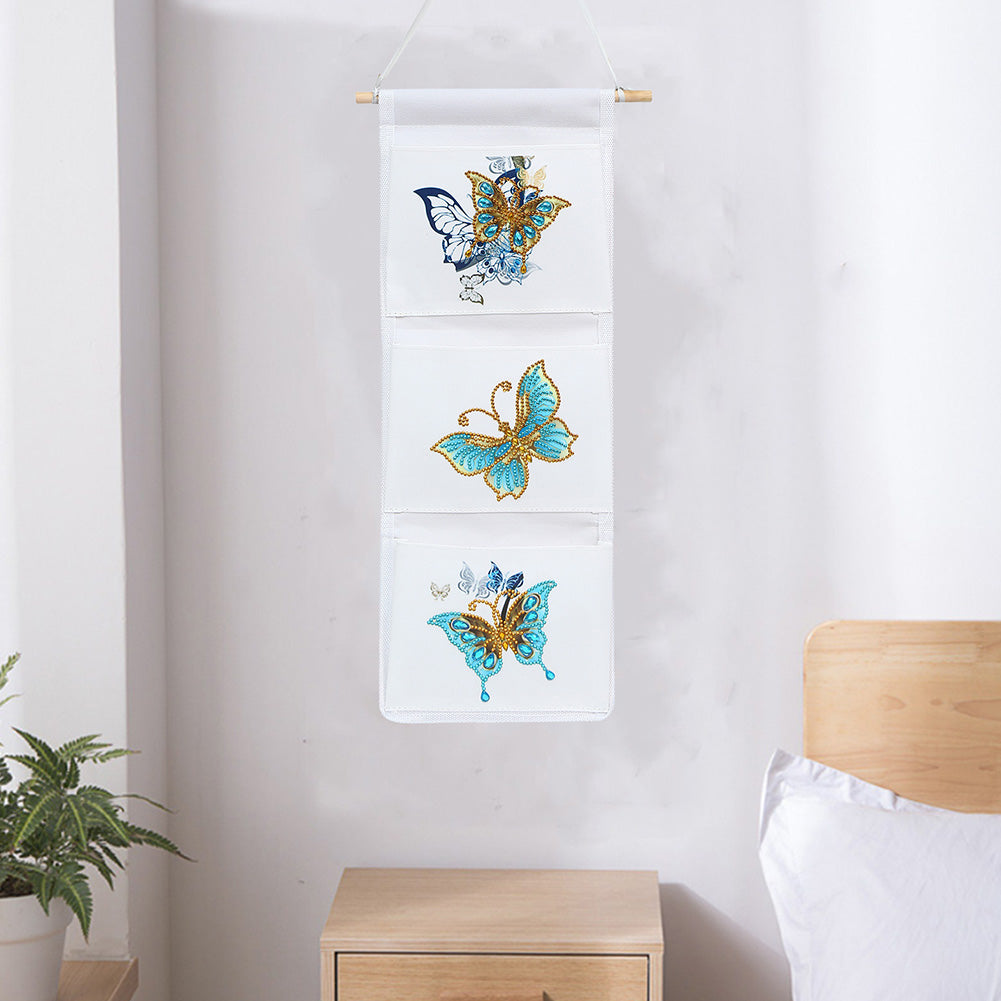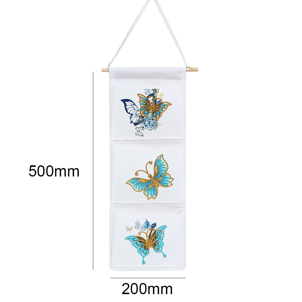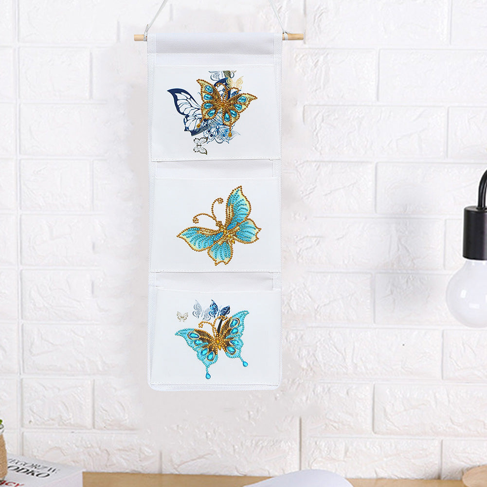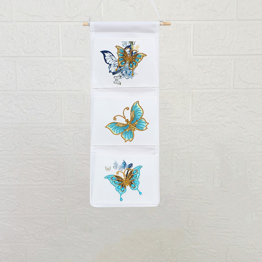 Butterfly Partial Special Shaped Drill Diamond Painting Wall Door Hanging Storage Bag Canvas 3 Pockets Pouch for Jewelry Sundries Cosmetics Toys Home Organizer