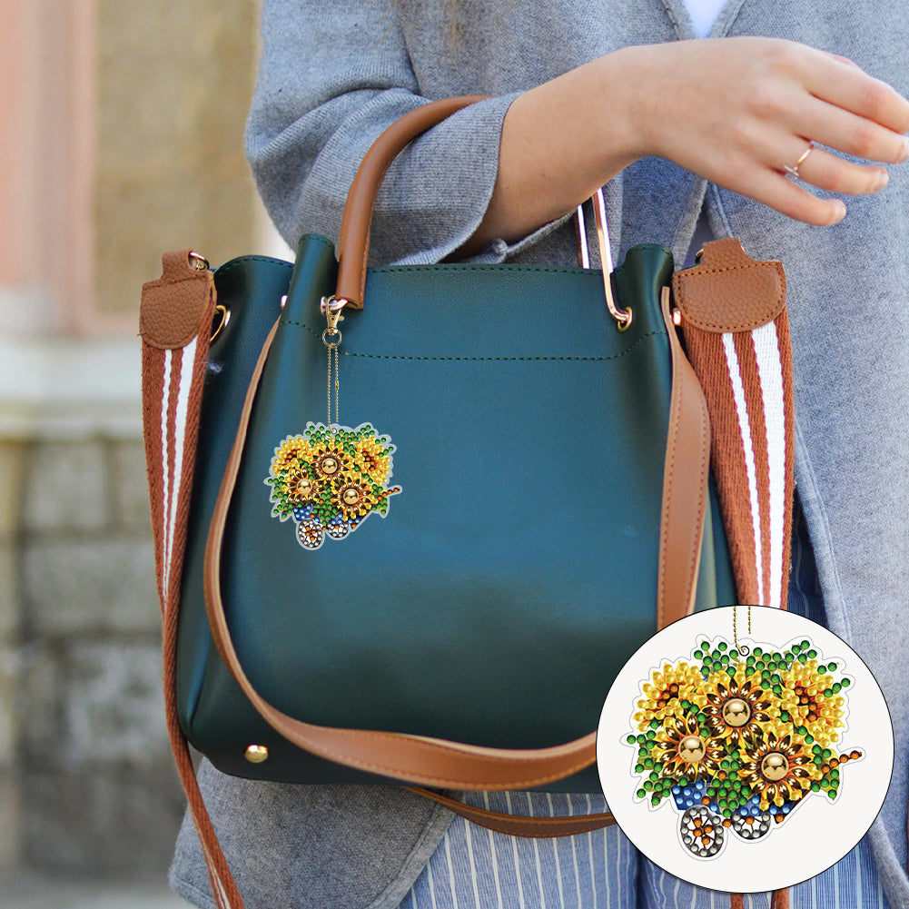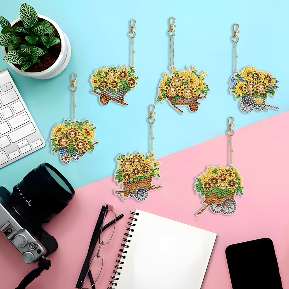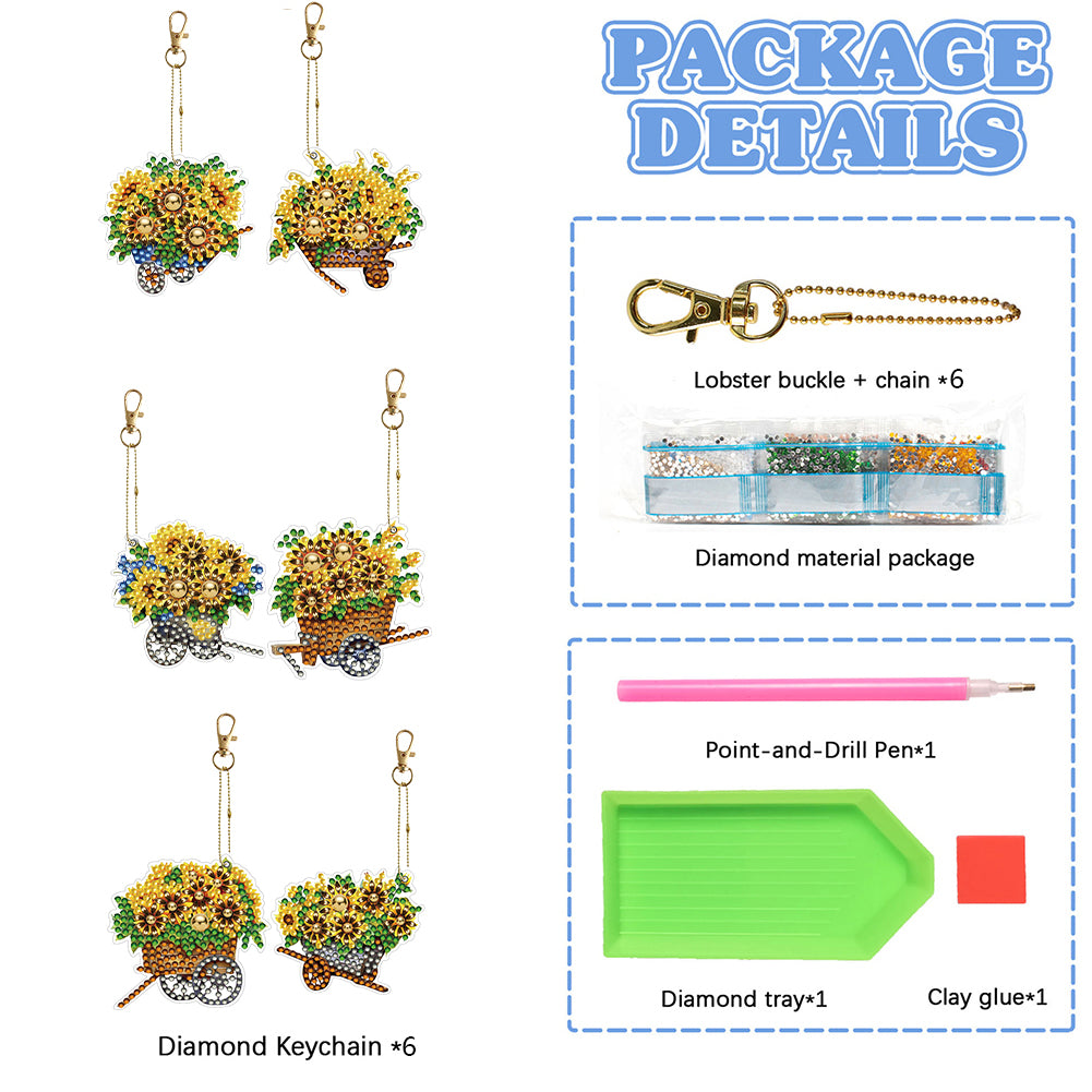 6PCS Double Sided Special Shape Diamond Painting Keychain (Sunflower Buggy)