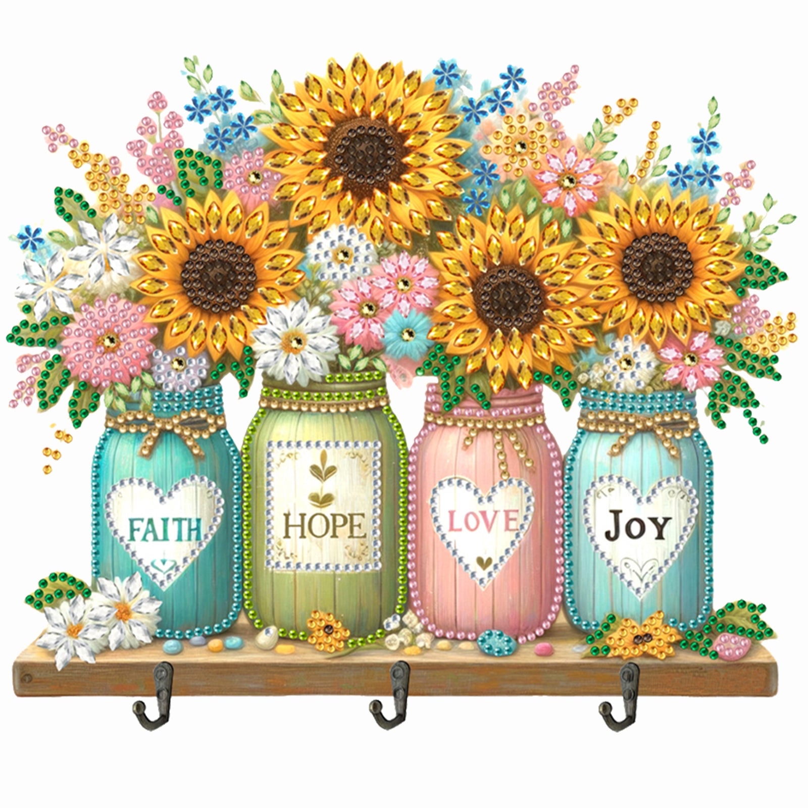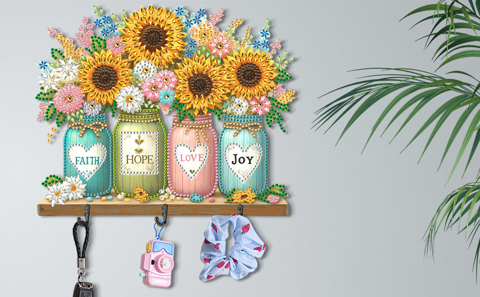 Flower Wooden Rhinestone Painting Coat Hook with 3 Hooks DIY Diamond Painting Art Hooks Punch Free for Home Office Decor