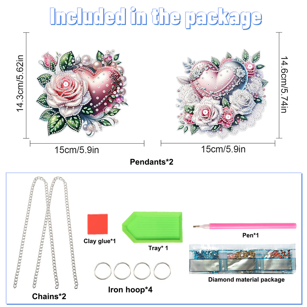 Special Shape Heart Rose 5D DIY Diamond Painting Dots Pendant Diamond Painting Decor Rhinestone Diamond Art Pendants for Wall Window