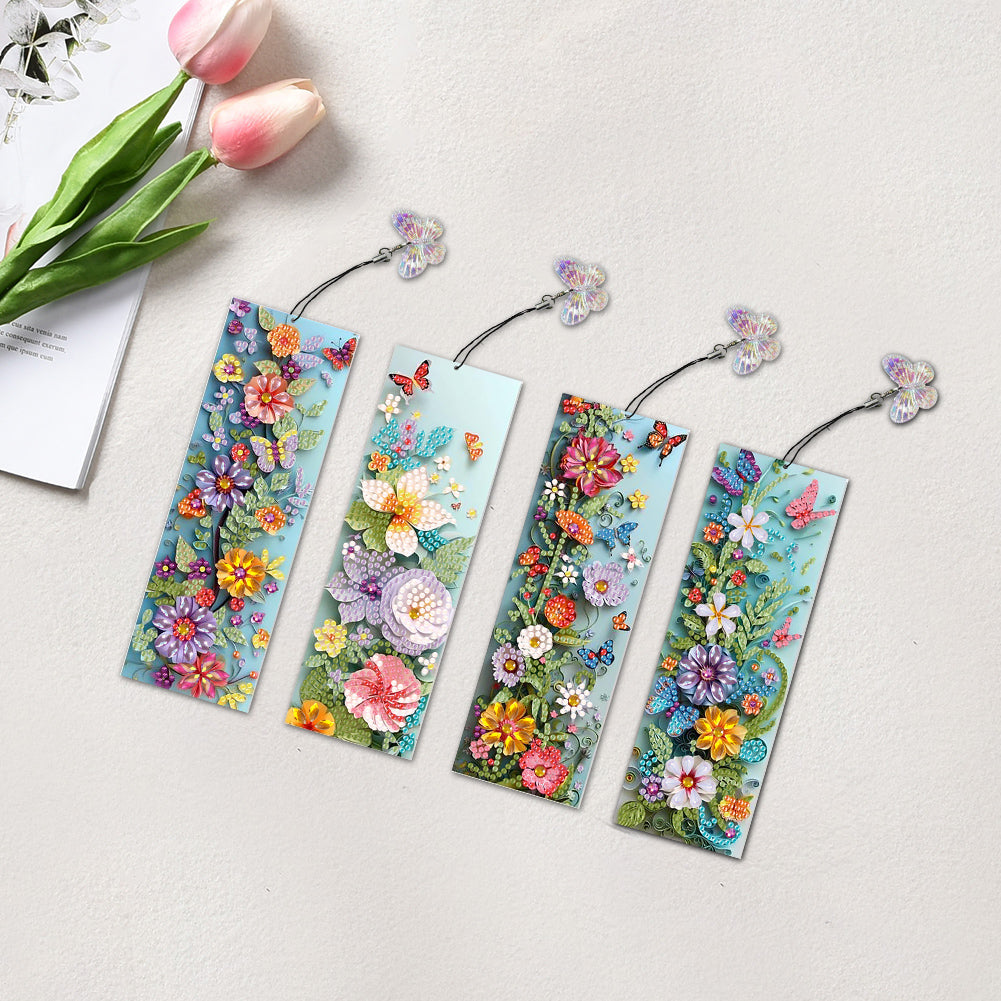 4Pcs Special Shape Flower Diamond Painting Bookmark Art Projects for Book Lovers