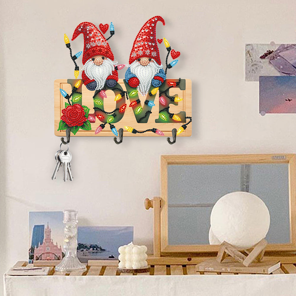 Wooden Special Shape Love And Gnome DIY Diamond Painting Art Hooks 3 Hooks Diamond Painting Hook Rail for Home Office Decor