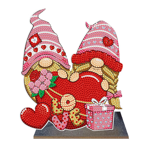 Wooden Diamond Painting Desktop Decor for Office Decor (Valentines Day Gnome)