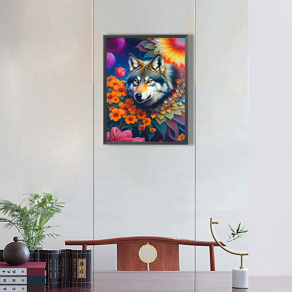 Wolf Among Flowers 30*40CM(Canvas) Full Round Drill Diamond Painting