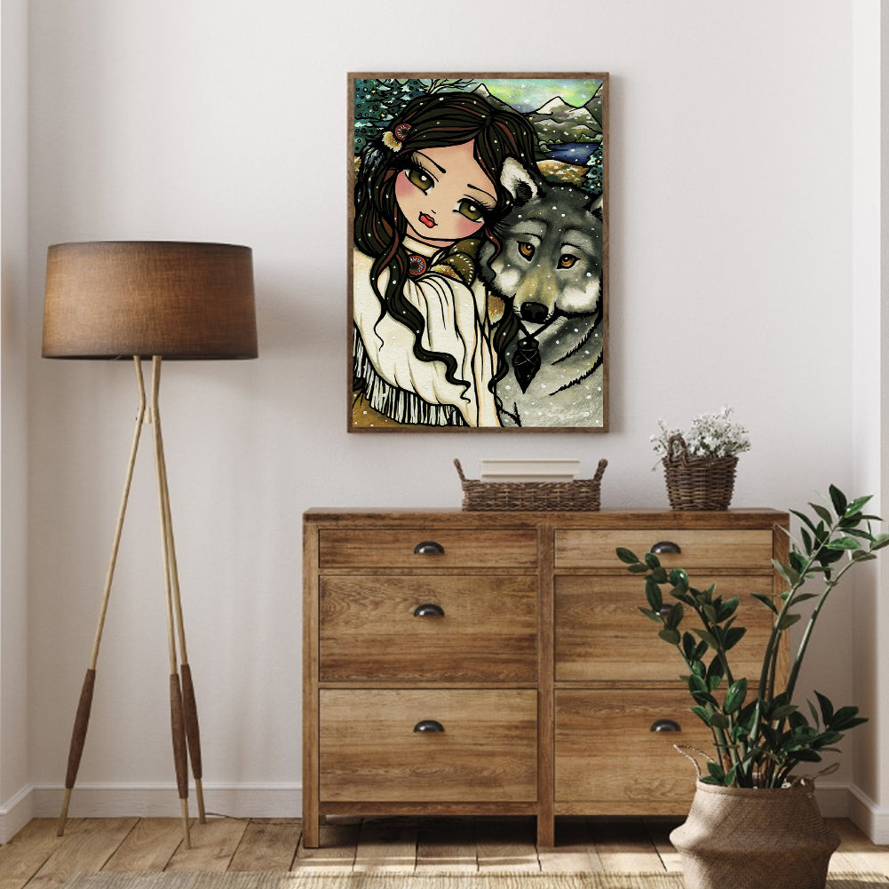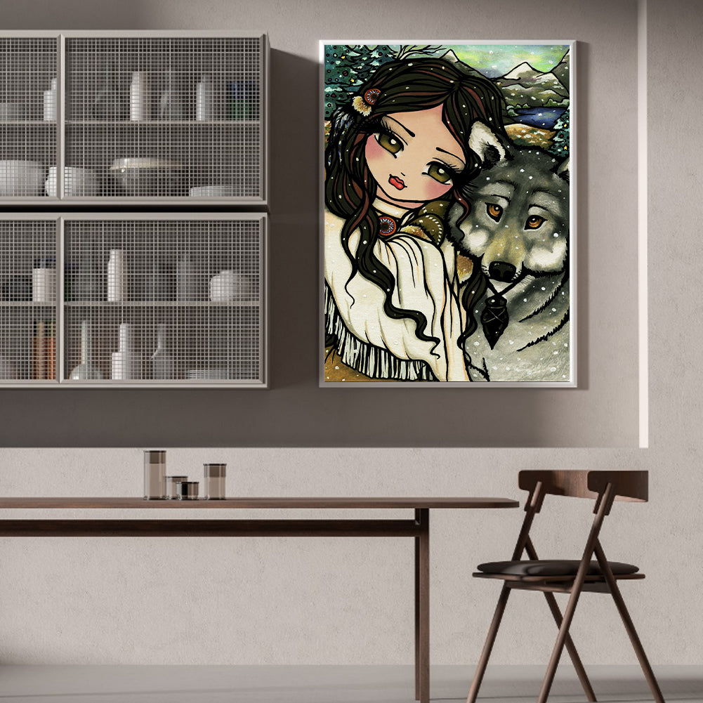 Wolf And Girl 30*40CM(Canvas) Full Round Drill Diamond Painting