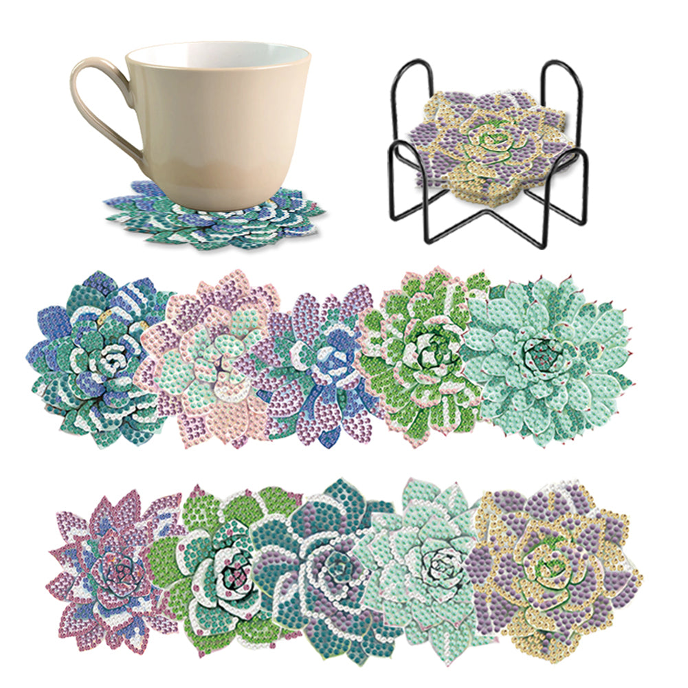 10 Pcs Diamond Painting Coasters Kits with Holder Wooden Diamond Painting Art Coaster Kit Diamond Painting Crafts Coaster for Coffee Table Bar Mugs Glass Cup Beer