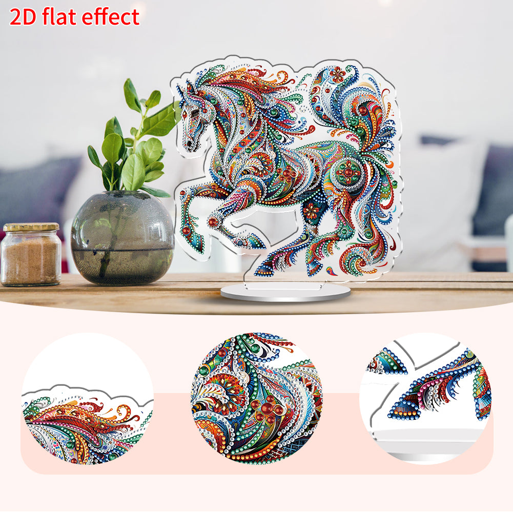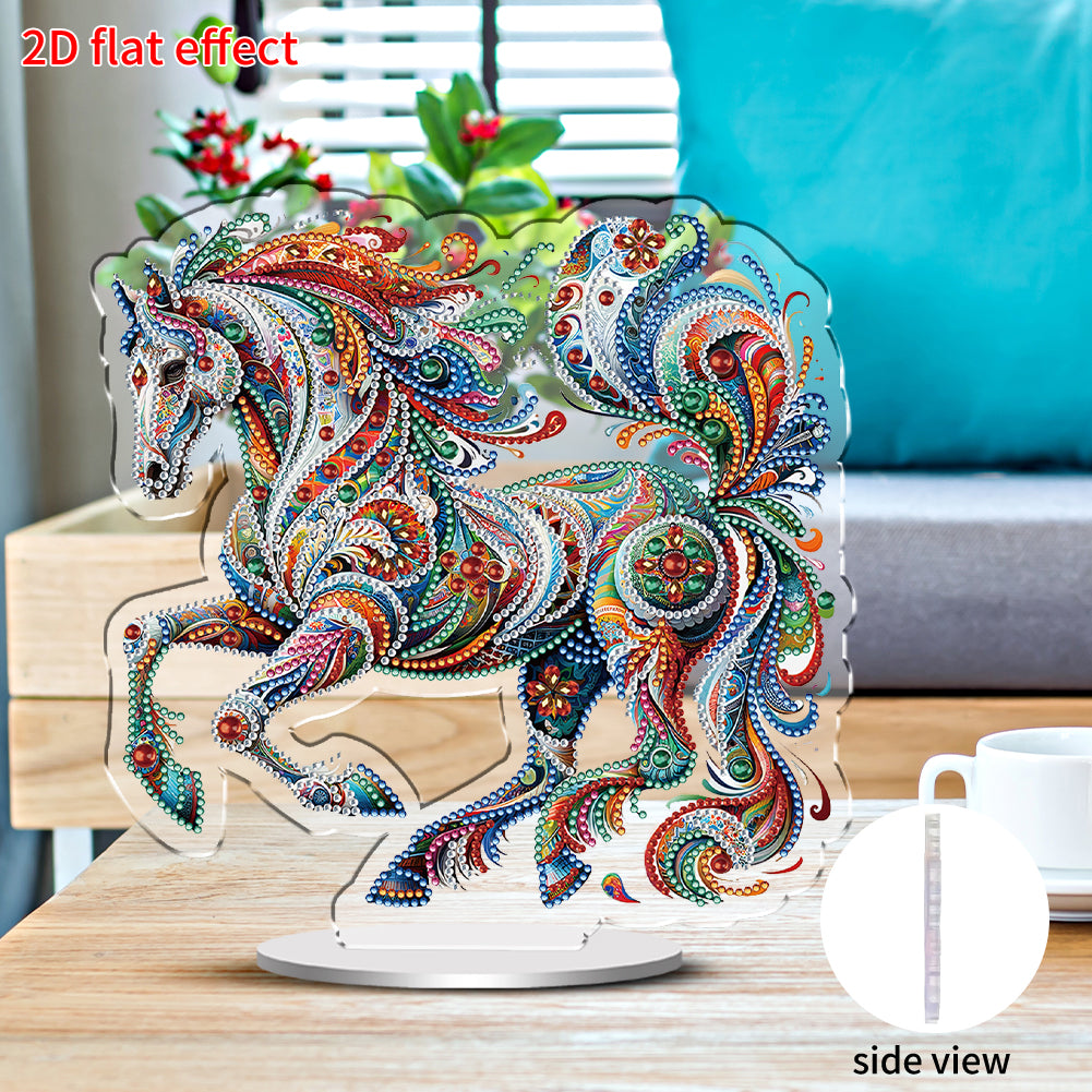 2D Flat Gorgeous Horse DIY Desktop Diamond Art Kits for Home Office Decoration