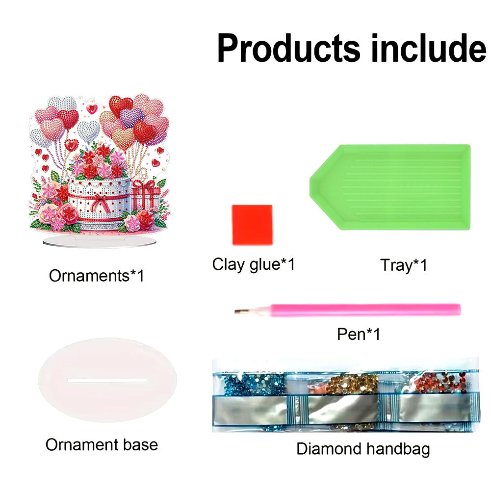 Acrylic Special Shaped Romantic Valentines Day Desktop Diamond Art Kits 5D DIY Diamond Art Tabletop Decorations for Office Decor
