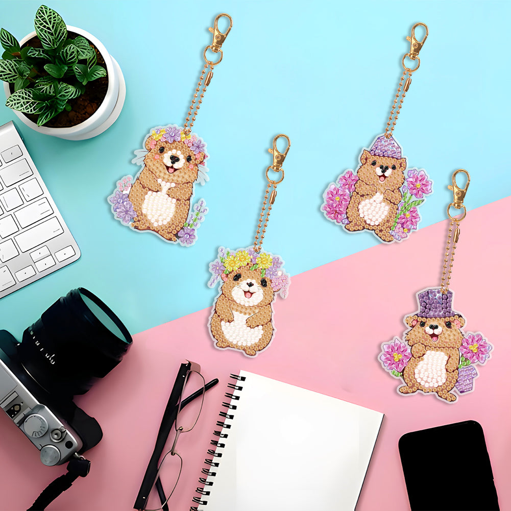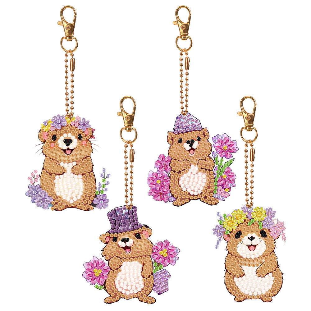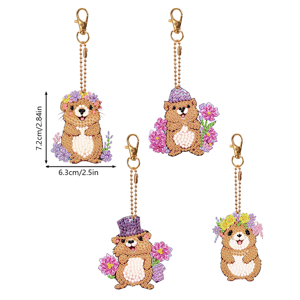 4PCS Round Diamond Painting Keychain Groundhog Double Sided Rhinestone Painting Keychain Pendant Dinosaur Diamond Painting Art Keychain Pendant for Beginners Adults Art Craft Supplies