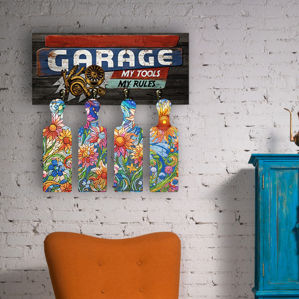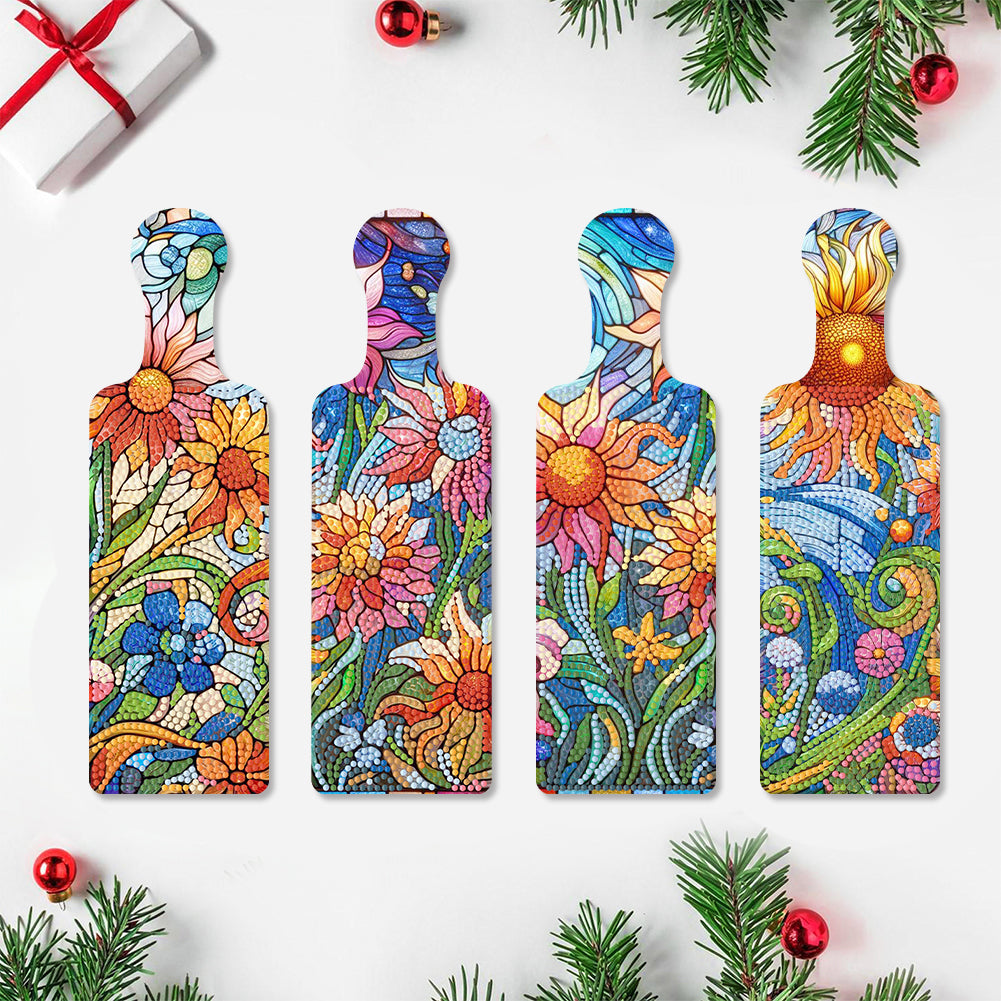 4Pcs Flowers Decorative Diamond Painting Serving Tray for Countertop Decor