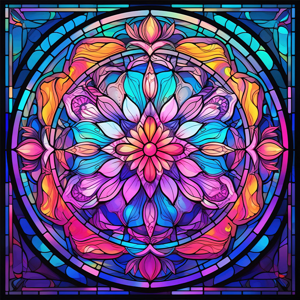 4PCS Mandala Glass Painting 30*30CM(Canvas) Full Round Drill Diamond Painting