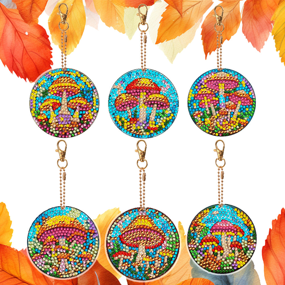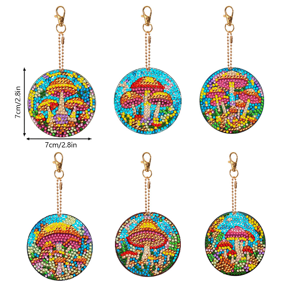 6 PCS Diamond Painting Keychain Double Sided Rhinestone Painting Keychain Pendant Special Shape Diamond Painting Art Keychain Pendant for Birthday Crafting Home Party Decor