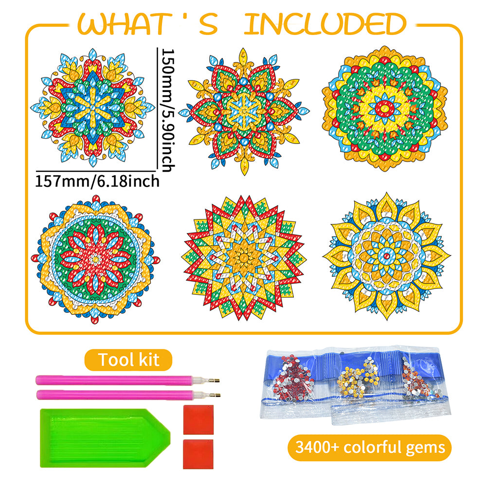 6 PCS Mosaic Diamond Art Stickers Mandala Diamond Mosaic Stickers Diamond Arts Craft Mosaic Stickers Gem Mosaic Stickers Paint by Numbers Set for Xmas Decor Gift