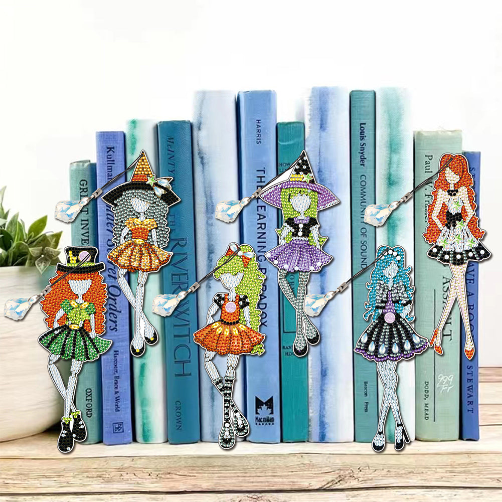 6pcs DIY Diamond Painting Beginner Arts Crafts with Crystal Little Witch DIY Acrylic Bookmark for Office School Home Book Lovers