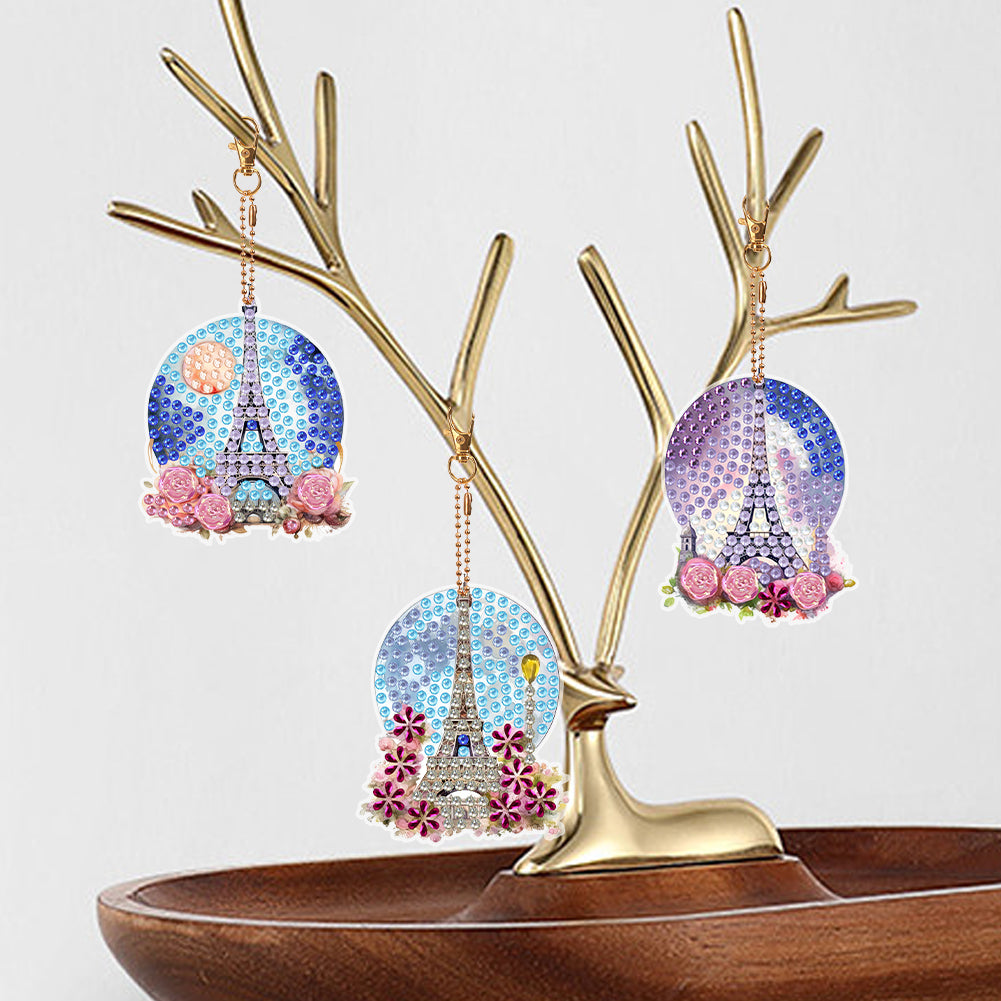 6Pcs Double Side Special Shape Eiffel Tower Diamond Painting Keychain Diamond Painting Art Keychain Pendant for Beginners Adults